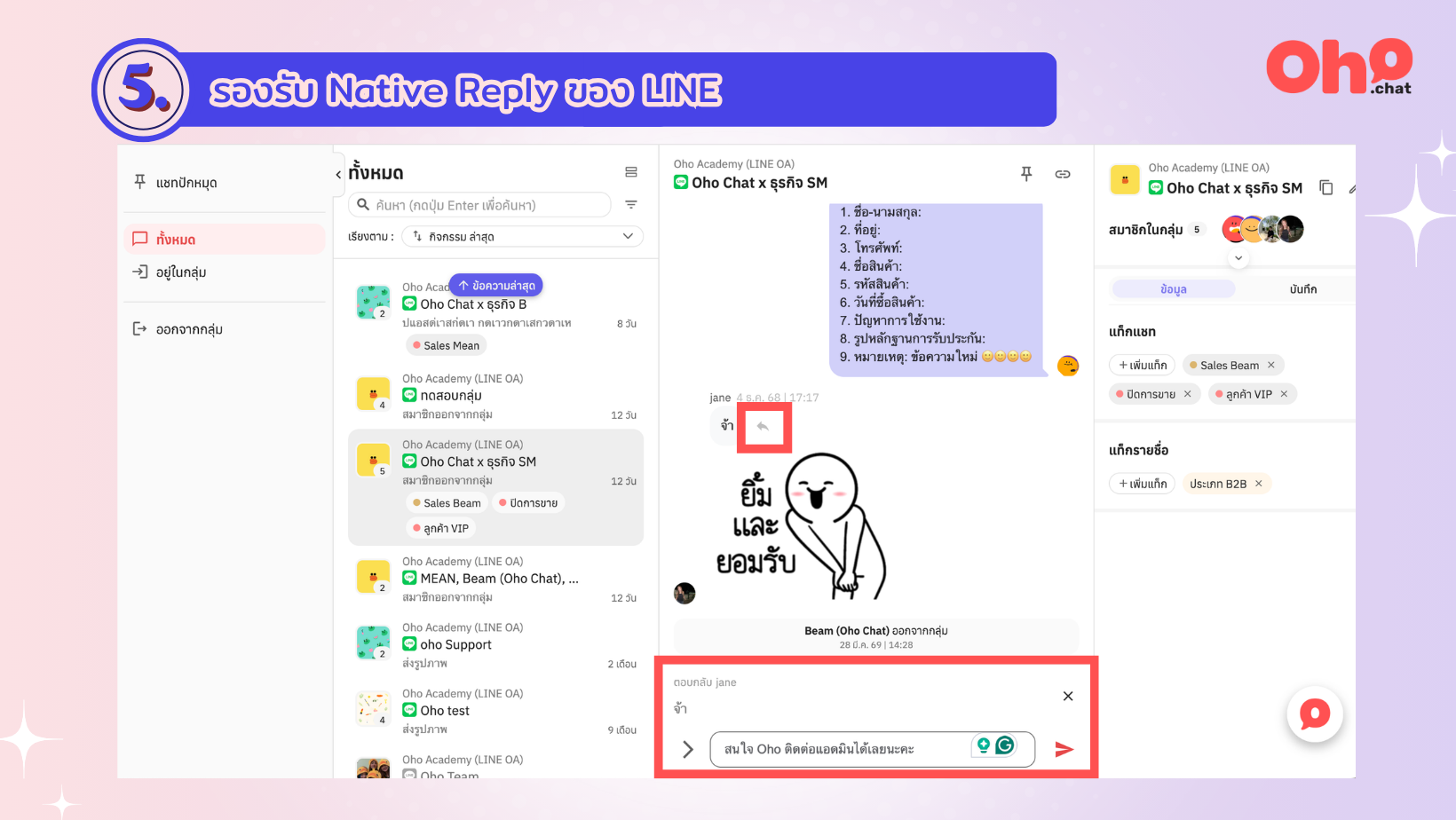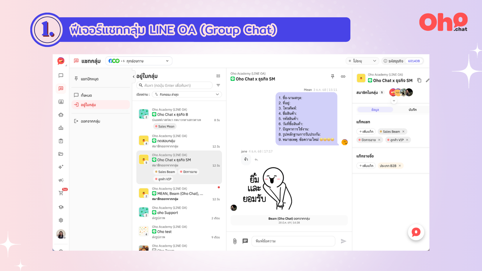 หมดปัญหาทีมงานสับสนเมื่อต้องดูแล LINE หลายกลุ่ม! ธุรกิจสามารถรวมแชทกลุ่มที่มี LINE OA ของธุรกิจเป็นสมาชิกอยู่ เข้ามาจัดการบนระบบ Oho Chat ได้แล้ว