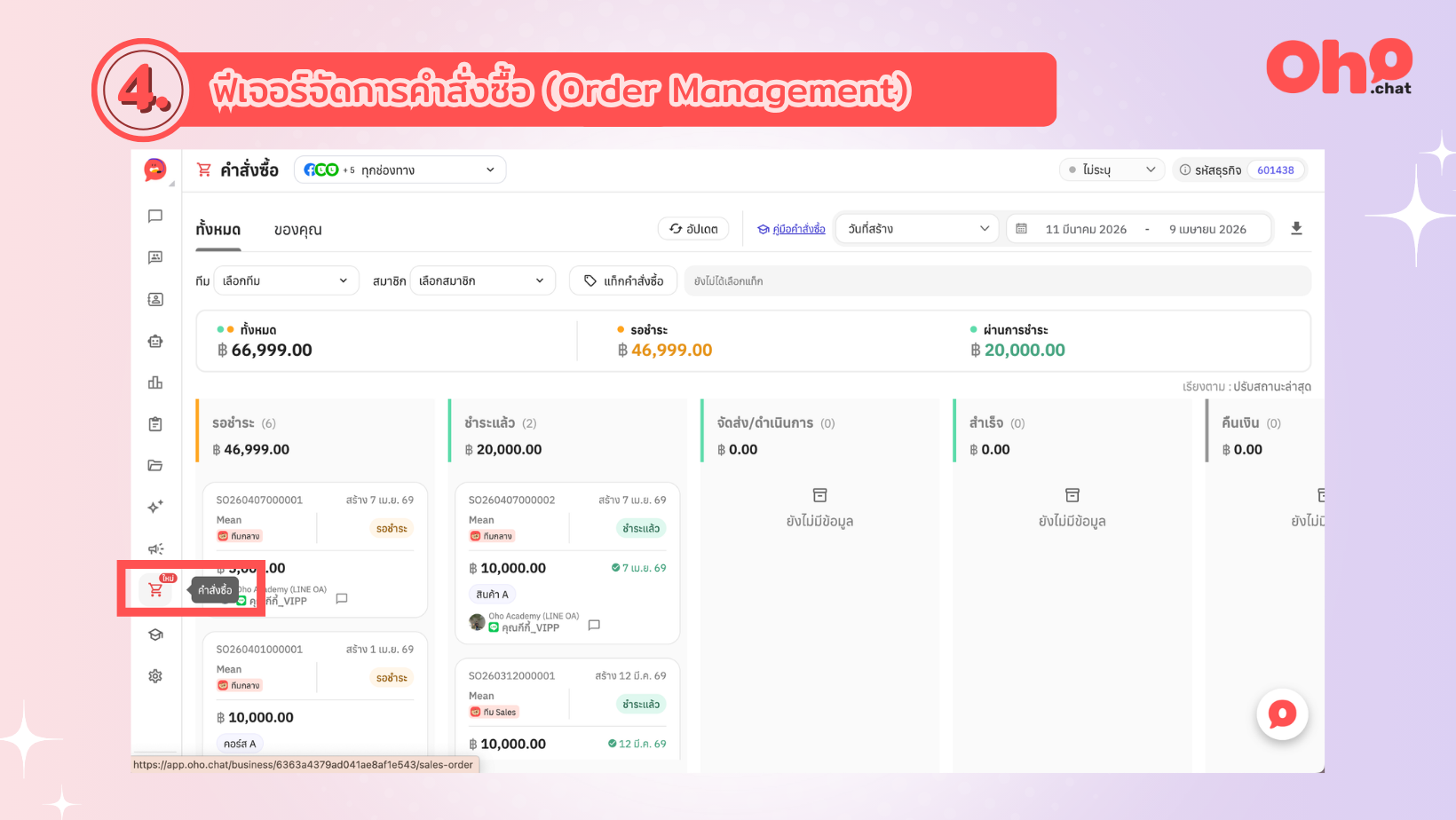 ยกระดับระบบรวมแชทไปสู่ระบบจัดการยอดขายที่สมบูรณ์แบบ จัดการกระบวนการทั้งหมดที่เกี่ยวข้องกับคำสั่งซื้อของลูกค้าได้ในระบบเดียว